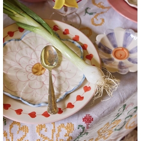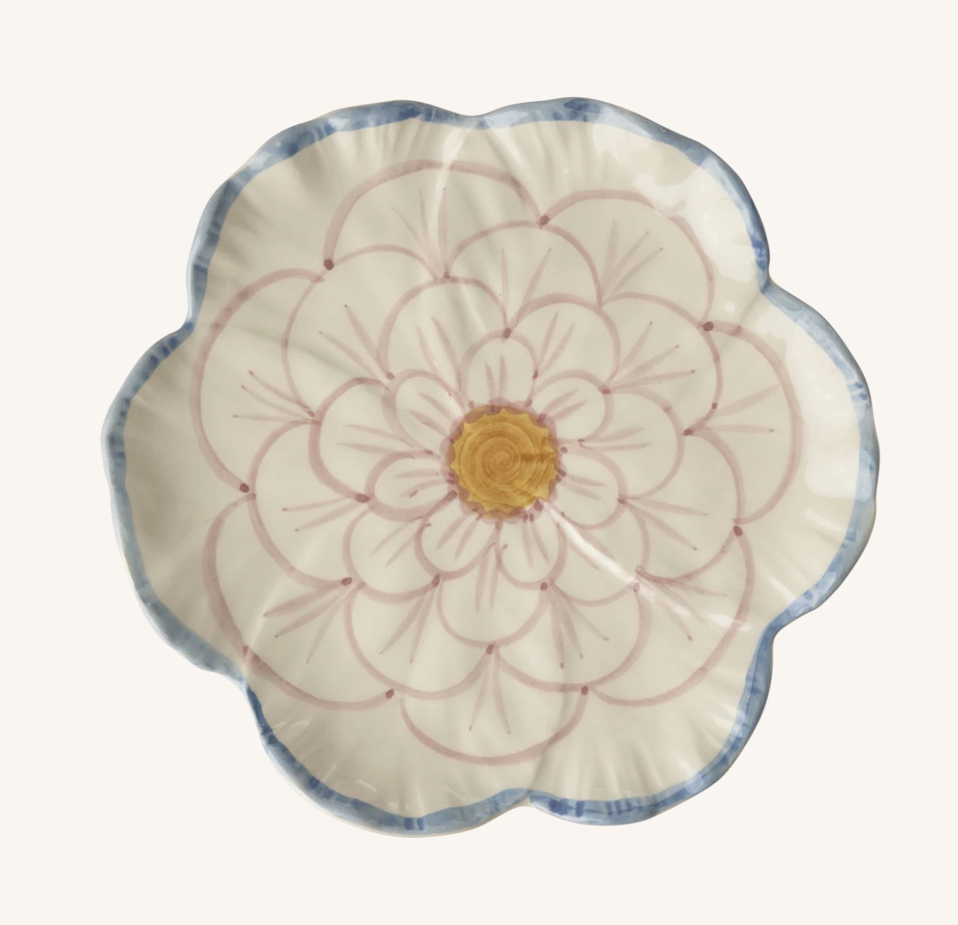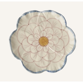 Dressez une table magnifique grâce à cette belle assiette en forme de fleur, qui peut aussi être utilisée comme petit plateau. Elle est décorée de détails lavande et d’un liseret bleu peints à la main au Portugal par un groupe de femmes extraordinaires. C’est pourquoi, il n’y en a pas deux pareilles ; chacune est vraiment une pièce unique.