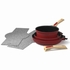 Ce pack contient une casserole 20 cm, une poêle 24 cm, une poêle 28 cm, 2 poignées détachables et 2 feutrines de protection