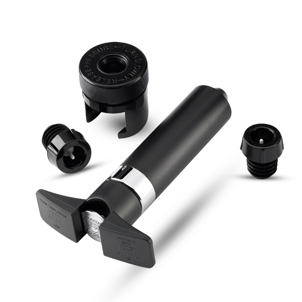 Fonction champagne, elle insuffle de l’air dans la bouteille ce qui permet de conserver au champagne son pétillant pendant plusieurs jours. Cette pompe à vide retire l’air de la bouteille ce qui permet de limiter l’oxydation du vin. Une belle façon de réapprécier un vin et de se remémorer aussi un bon moment passé.