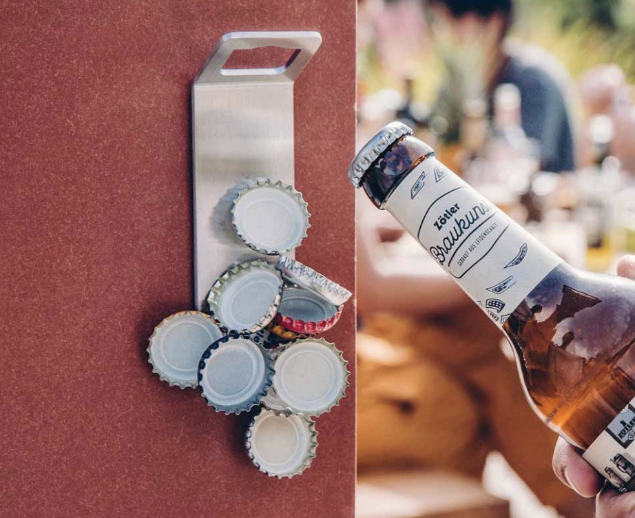 JOHNNY CATCH - Bière, limonade ou eau tonique – JOHNNY CATCH Aimant attire tous les capsules avant qu’elles ne touchent le sol. Son puissant aimant invisible peut retenir jusqu’à 15 capsules sur sa surface en acier inoxydable – et forme une “barbe de capsules” étonnante !