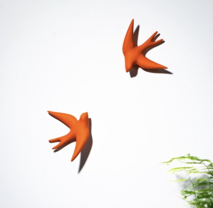 Hirondelle en argile, fabriquée et peinte à la main en France (Marseille) avec les peintures françaises Ressources.