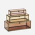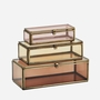 Matière: Verre, fer Couleur: Rose, orange, café, fourmi.laiton Dimensions: 10x4x3/13x5,5x5/15x7x5,5 cm Poids: 0.470 kg