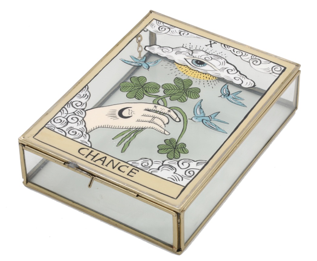 cette boîte est bien plus qu'un simple objet décoratif, c'est un porte bonheur, conçu pour vous apporter, chance, bonheur, protection ou amour... Peinte à la main, chaque boîte est unique boîte en verre et laiton prix métropole