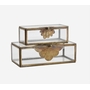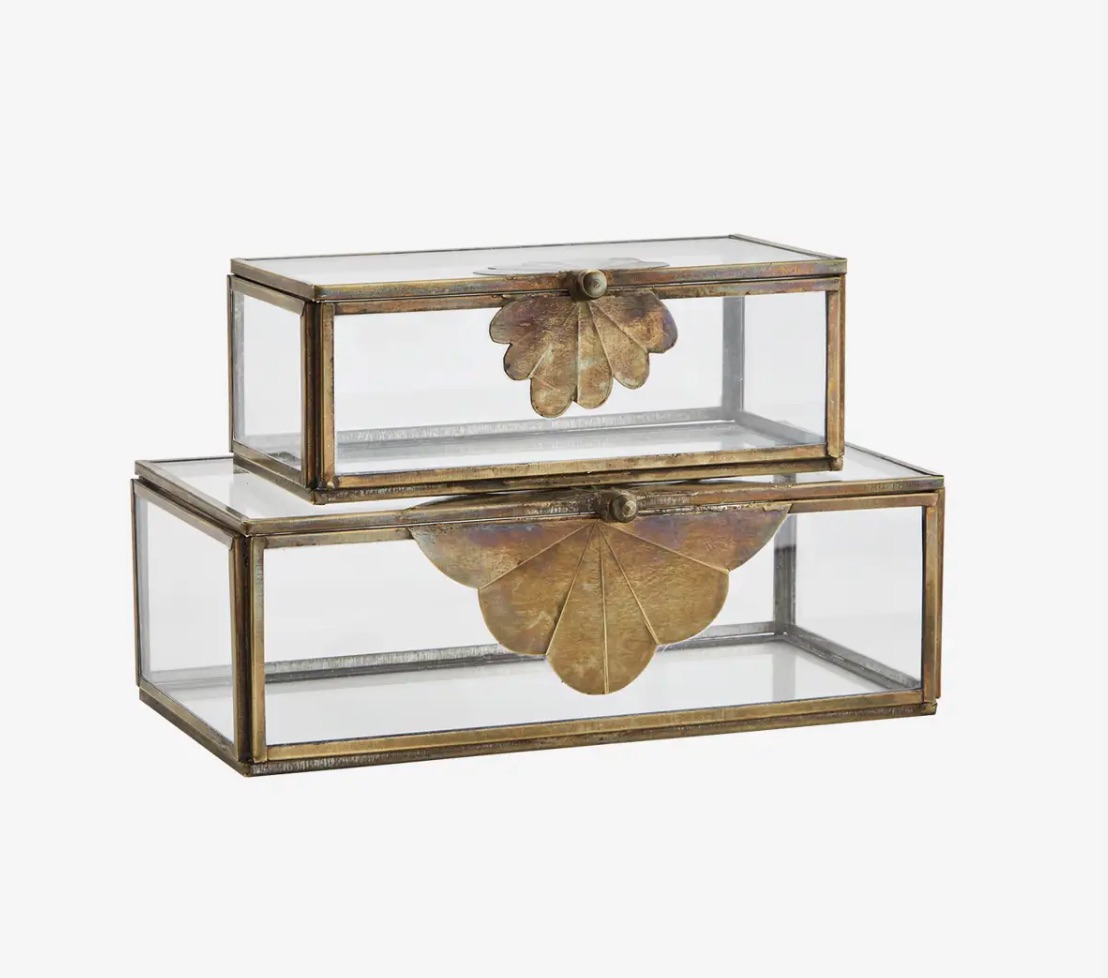 Cette boîte de rangement est fabriquée en verre et en fer, avec une finition laiton vieilli qui lui confère un aspect antique. Fabriquée en Inde, elle met en valeur un savoir-faire artisanal exceptionnel. Idéale pour ranger bijoux et autres objets précieux, cette pièce offre des solutions de rangement pratiques. Son design lui permet de s'intégrer harmonieusement à différents styles d'intérieur, alliant simplicité et authenticité.