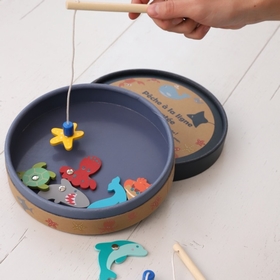 Armés de leur canne à pêche, les enfants vont pouvoir pêcher ces 10 petits poissons magnétiques. Ils s'accrocheront au bout de la ficelle de la canne par magnétisme. De formes et de couleurs différentes, les poissons de ce jeu de pêche à la ligne vont permettre la concentration et l'apprentissage des couleurs et des formes. Un jeu ludique et éducatif pour s'amuser en famille !