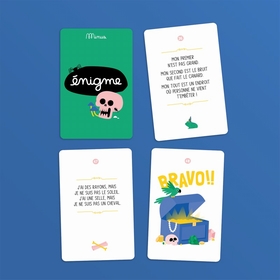 Des énigmes qui permettent au enfants de se creuser (un peu) la tête pour trouver le lieu de la prochaine énigme ! et ainsi de suite jusqu'au trésor... Vous allez voir, vous avez forcément tous ces endroits chez vous !
