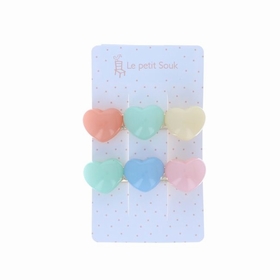Ces jolies barrettes vont faire beaucoup d'effet dans la chevelure de votre enfant ou la votre. On craque pour leur couleur pastel, super tendance et leur forme de coeur ! Dimensoins : 6,5 cm