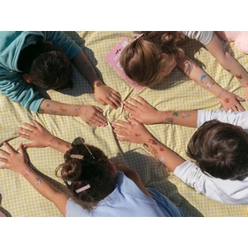 Vous n'avez plus qu'à passer un peu d'eau sur le papier pour que le tatouage se fixe. Enlever le papier et tadam ! Le tatouage est fait ! Tous les tatouages ont été testés dermatologiquement. Une fois posés, les tatouages partiront petit à petit au fil des lavages sinon un petit coton d'alcool permettra de le retirer sans frotter.