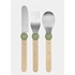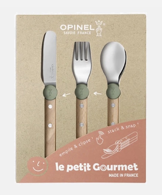 Pensé pour les petits de 6 mois à 7 ans, il aide à acquérir les bons gestes tout en favorisant le plaisir de manger. Fabriqué en France, il reflète le savoir-faire Opinel : manche en hêtre certifié PEFC, acier inoxydable et clip en plastique recyclé permettant d'assembler les trois couverts et de les transporter facilement.