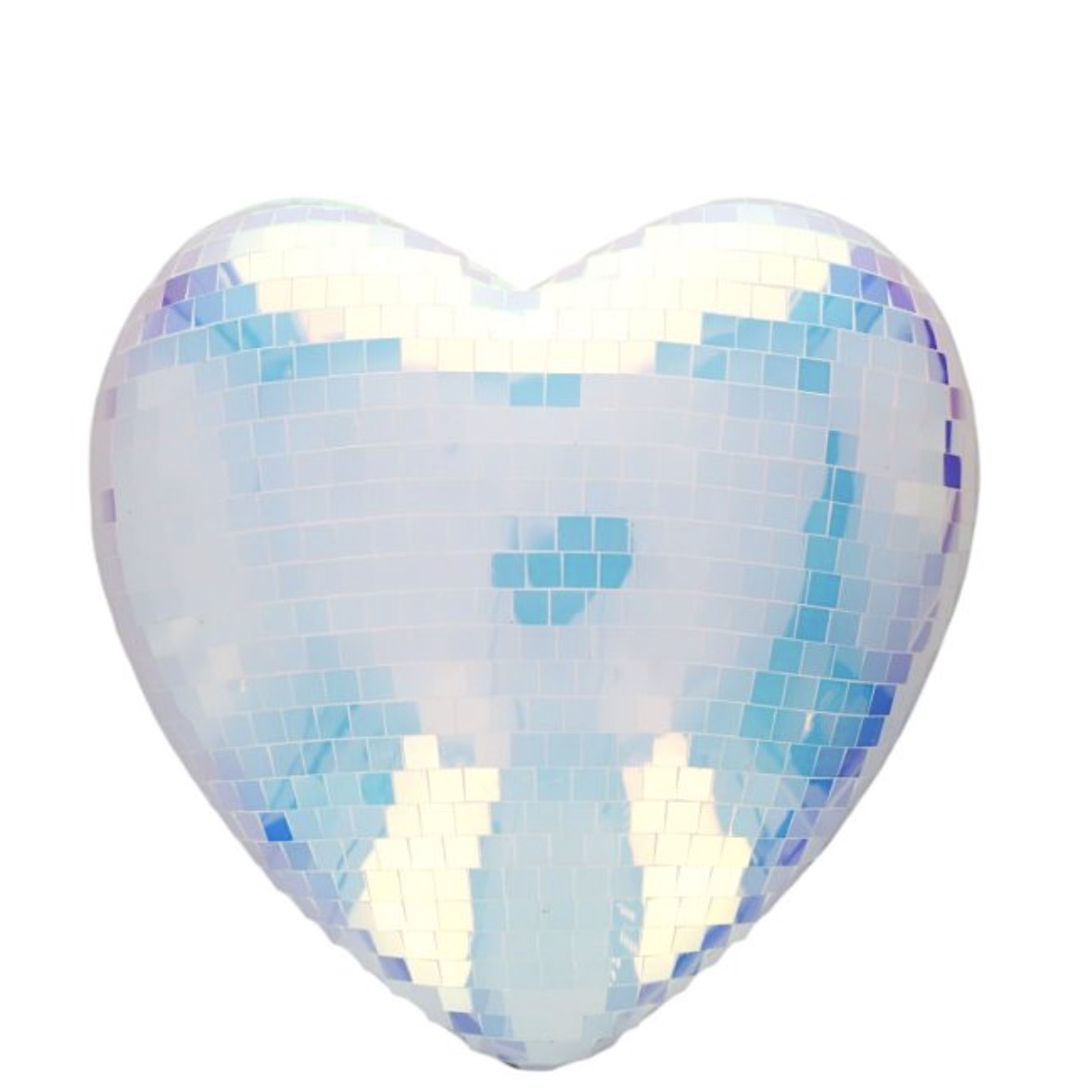 Apportez une touche lumineuse et disco dans votre déco ! Ce coeur mural disco à facettes va faire tourner les têtes avec sa face en reliefs bombée et recouverte de facettes iridescentes. L''arrière plat est prévu pour le suspendre contre un mur. Il suffit d'une petite pointe pour l'accrocher et en faire un accessoire de décoration trop canon à la maison.