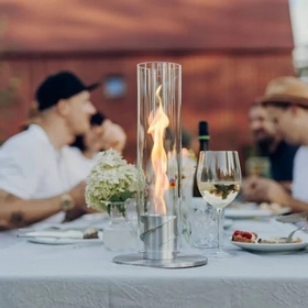 SPIN – le tourbillon de flammes dans un cylindre en verre décoratif crée une ambiance de feu de camp sur votre balcon, dans votre salon ou sur votre terrasse. Un véritable point de mire, qui brûle proprement et sans odeur grâce au gel bioéthanol höfats – tout en diffusant une chaleur agréable à 360°.