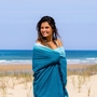 Côté pile : un paréo en Kikoy (un tissu traditionnel d'Afrique de l'Est) fabriqué avec du coton peigné.