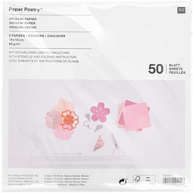 Ce kit contient 50 feuilles de papier origami, quatre gabarits et des instructions de pliage pour créer différentes formes de fleurs de cerisier. Les feuilles mesurent 15 x 15 cm et ont un grammage de 80 g/m², ce qui les rend idéales pour de nombreux projets de pliage et de loisirs créatifs. Elles sont disponibles en cinq couleurs différentes.