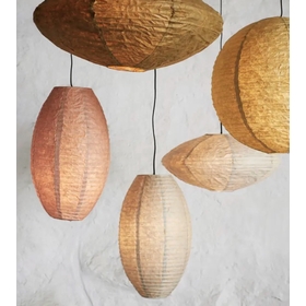 Fabriqués à partir de fibres végétales naturelles, ces abat-jour sont confectionnés artisanalement par des femmes au sein de coopératives dans les montagnes himalayennes du Népal.