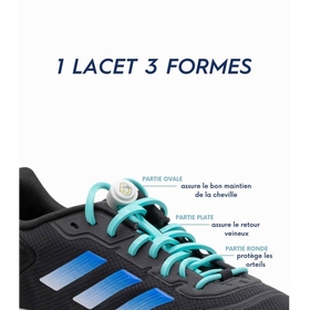 Les lacets élastiques en silicone s'adaptent à la morphologie du pied en assurant un maintien optimal et uniforme.