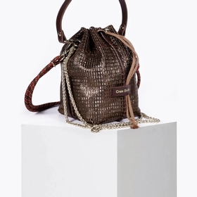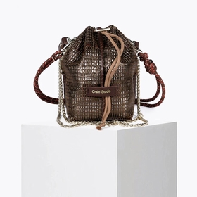 Le sac Bibi est un mini sac seau au design audacieux, fabriqué à la main dans l'atelier de Casablanca.