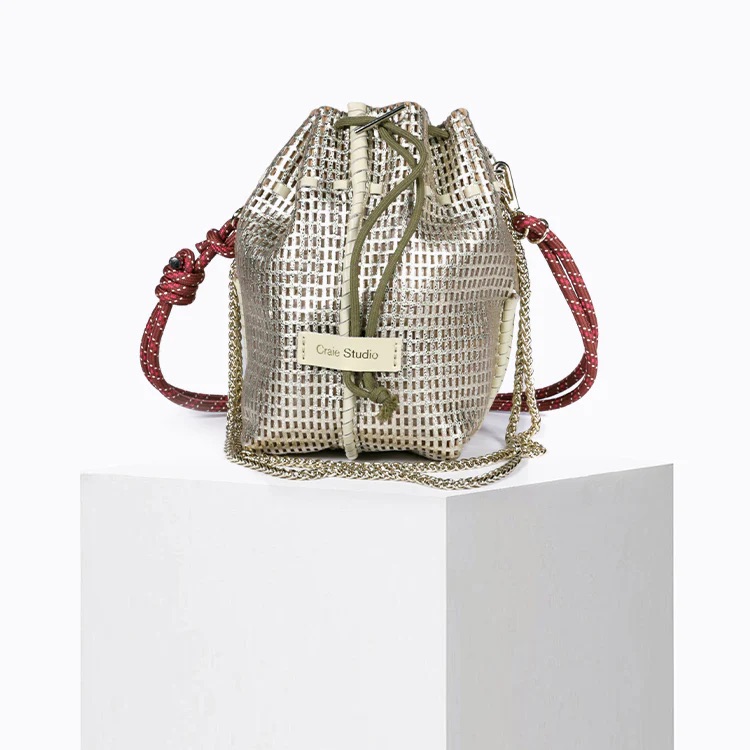 Le sac Bibi est un mini sac seau au design audacieux, fabriqué à la main dans l'atelier de Casablanca.