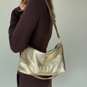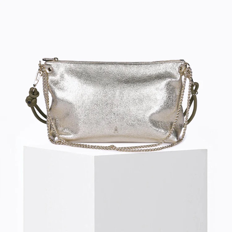 Le Mallow est un sac modulable au style affirmé, réalisé en cuir d’agneau souple métallisé, au fini lumineux et subtil.