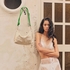 Son petit plus, il est livré avec deux bandoulières : une sophistiquée en chaîne escargot doré clair (qui peut se doubler pour la raccourcir), l'autre plus mode, en corde d'escalade rayé.